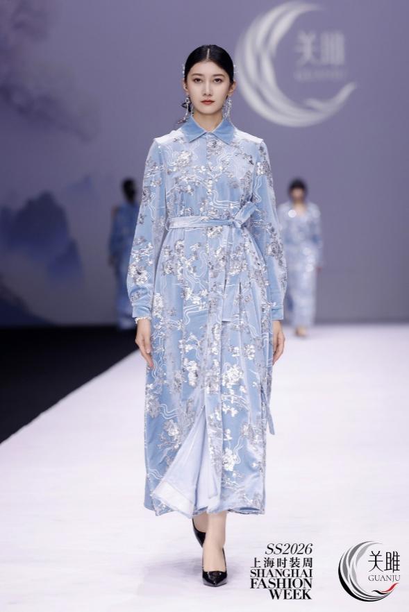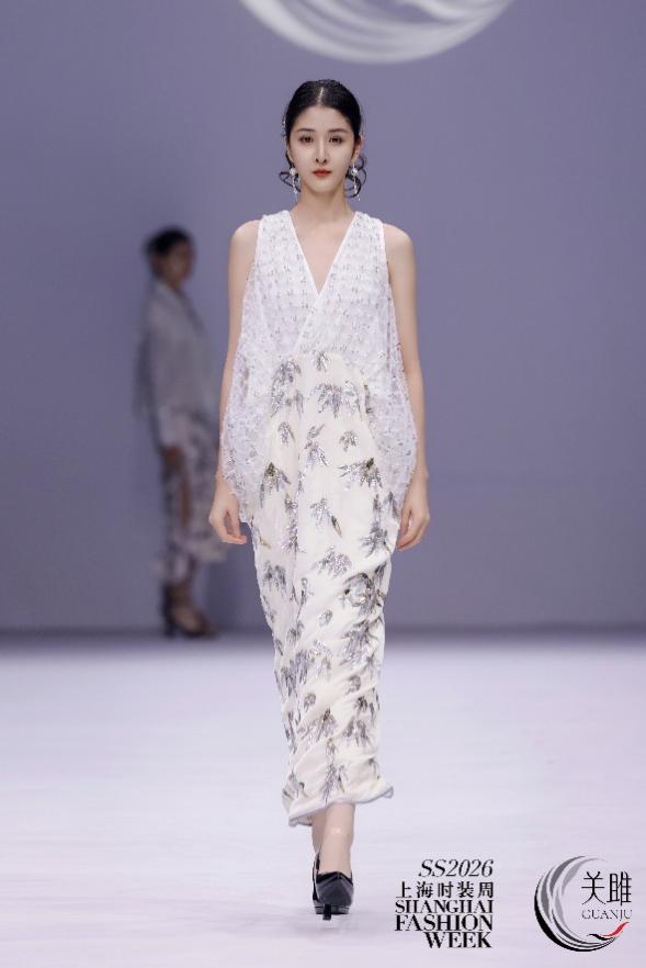 近日,上海时装周在新天地正式启幕。我院服装专业骨干教师李娟、张晶镜、李守振,及彩锦绣技艺创新传承平台核心成员受邀出席活动,重点参与我院彩锦绣技艺团队成员关亚争设计师打造的2026年春夏“关雎”系列时装发布会。