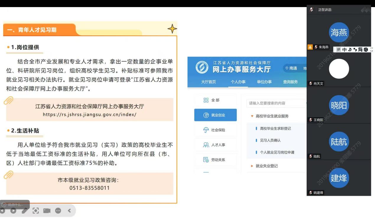 本次主题班会聚焦政策解读核心,重点向毕业生讲解南通市针对高校毕业生推出的多项惠才举措:其一,毕业生首次在南通就业可申领一次性就业补贴;其二,参与就业见习期间,可享受生活补贴支持;其三,本科及大专学历毕业生若入职南通重点产业企业,还能获得月度生活补贴。此外,政策还配套提供创业补贴、小额创业贷款、购房补贴及租房补贴等多元支持,从就业、创业、安居等多维度为青年人才在南通发展筑牢保障,营造良好发展环境。