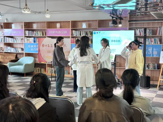 活动以“阅读+戏剧”为载体,围绕心理主题书籍片段,将书中情绪共鸣转化为肢体互动、情景演绎。“心有灵犀”肢体协作、“情绪传递”情景演绎等环节,让青年们在欢笑中觉察情绪、学会共情。