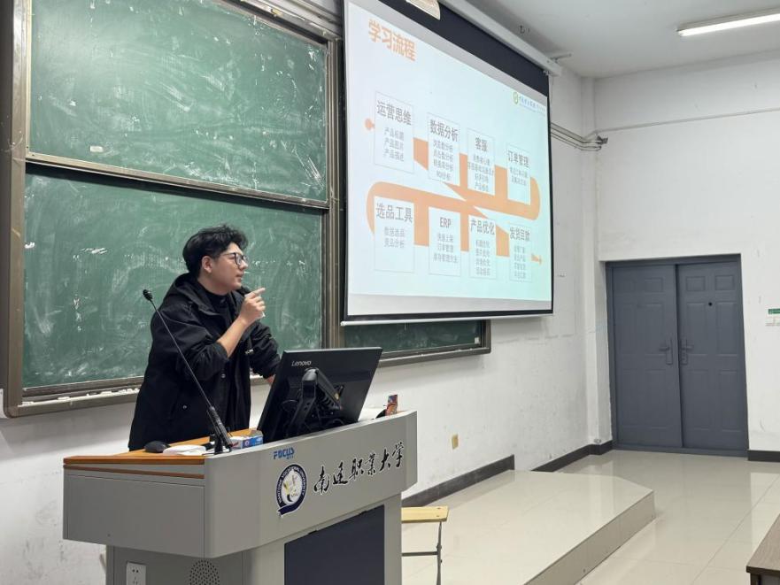 为深化产教融合,推动校企协同育人,南通新星跨境电商产业园走进南通职业大学海门学院,为数字媒体技术专业2025级学生带来了一场以“校企携手探电商:从课堂到产业的职业路径导航”为主题的宣讲活动。