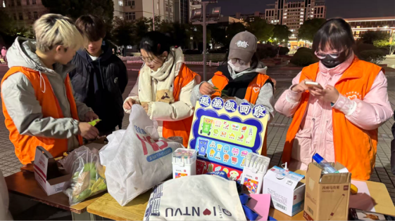 随后,艺术团的歌声与街舞表演点燃广场,而“树叶拼贴画”摊位前格外热闹:同学们用树叶拼成兔子、小鸭等形象,将自然元素融入创作。志愿者手持“送垃圾回家”分类看板,引导大家在游戏中巩固环保知识。