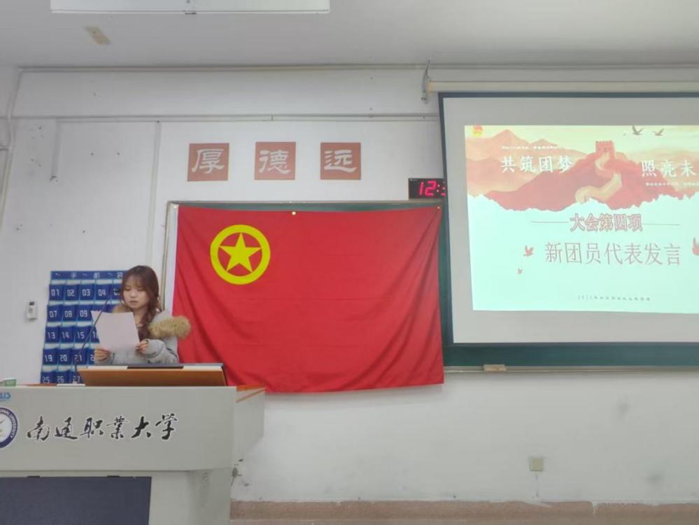 在领誓人潘艳姿的带领下,新团员面向团旗庄严宣誓,铿锵誓言彰显了青春担当。新团员代表李希亚在发言中,表达了入团的激动心情与践行誓言、砥砺前行的决心。