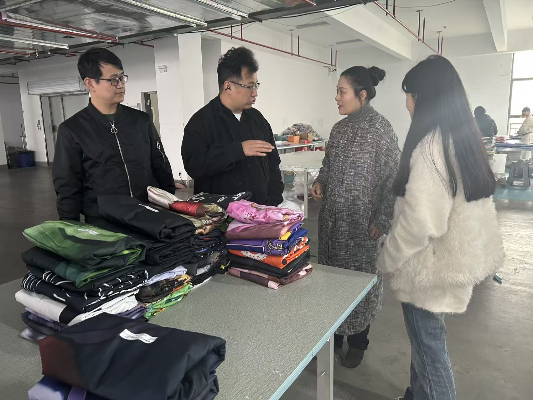 走访过程中,一行人深入家纺市场设计工位、产品展示区,实地察看学生实习工作环境,详细了解同学们在家纺纹样设计、款式开发、市场流行趋势研判、面料工艺搭配等岗位的实操内容,细致询问实习适应情况、工作收获、生活保障及思想动态,耐心倾听学生在设计创作、职场适应、职业规划等方面遇到的困惑与诉求。